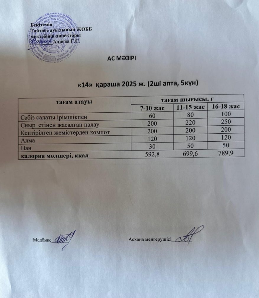 Мектептегі тамақтану 14.11.2025ж