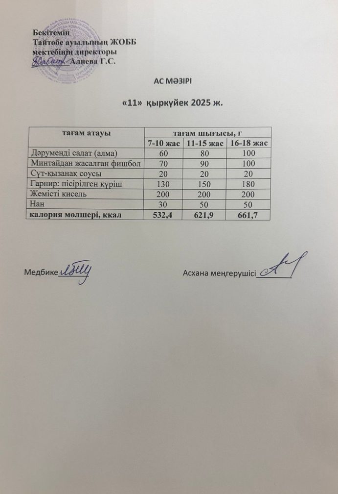 Мектептегі тамақтану 11.09.2025ж