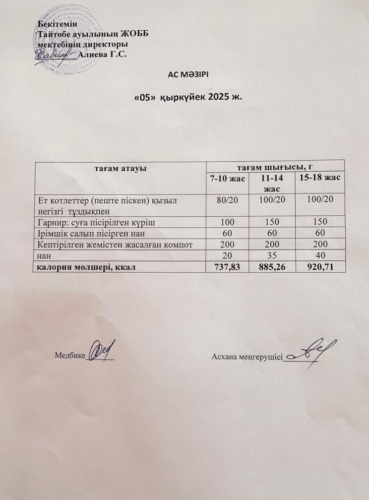 Мектептегі тамақтану 05.09.2025ж