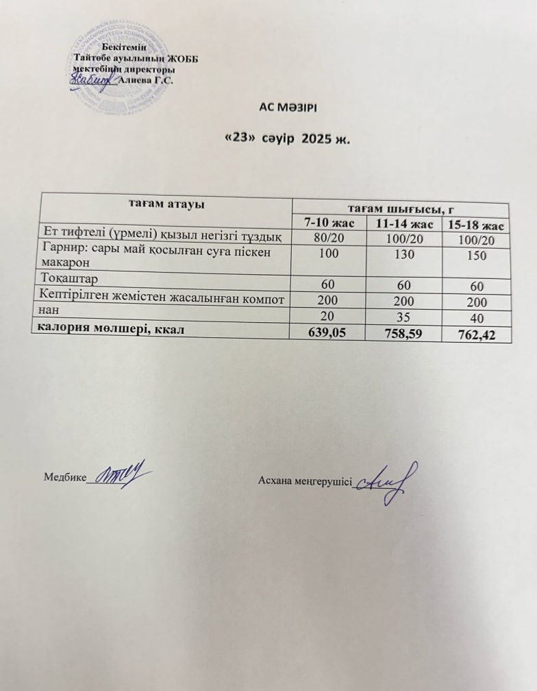 Мектептегі тамақтану 23.04.2025ж